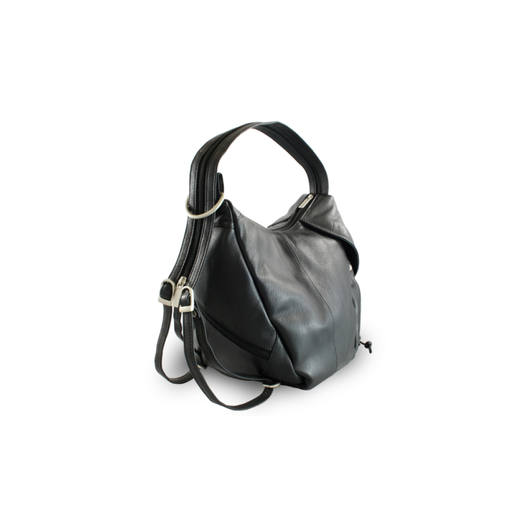 Black leather backpack - Handbag Size: 22 x 13 x 29 cm