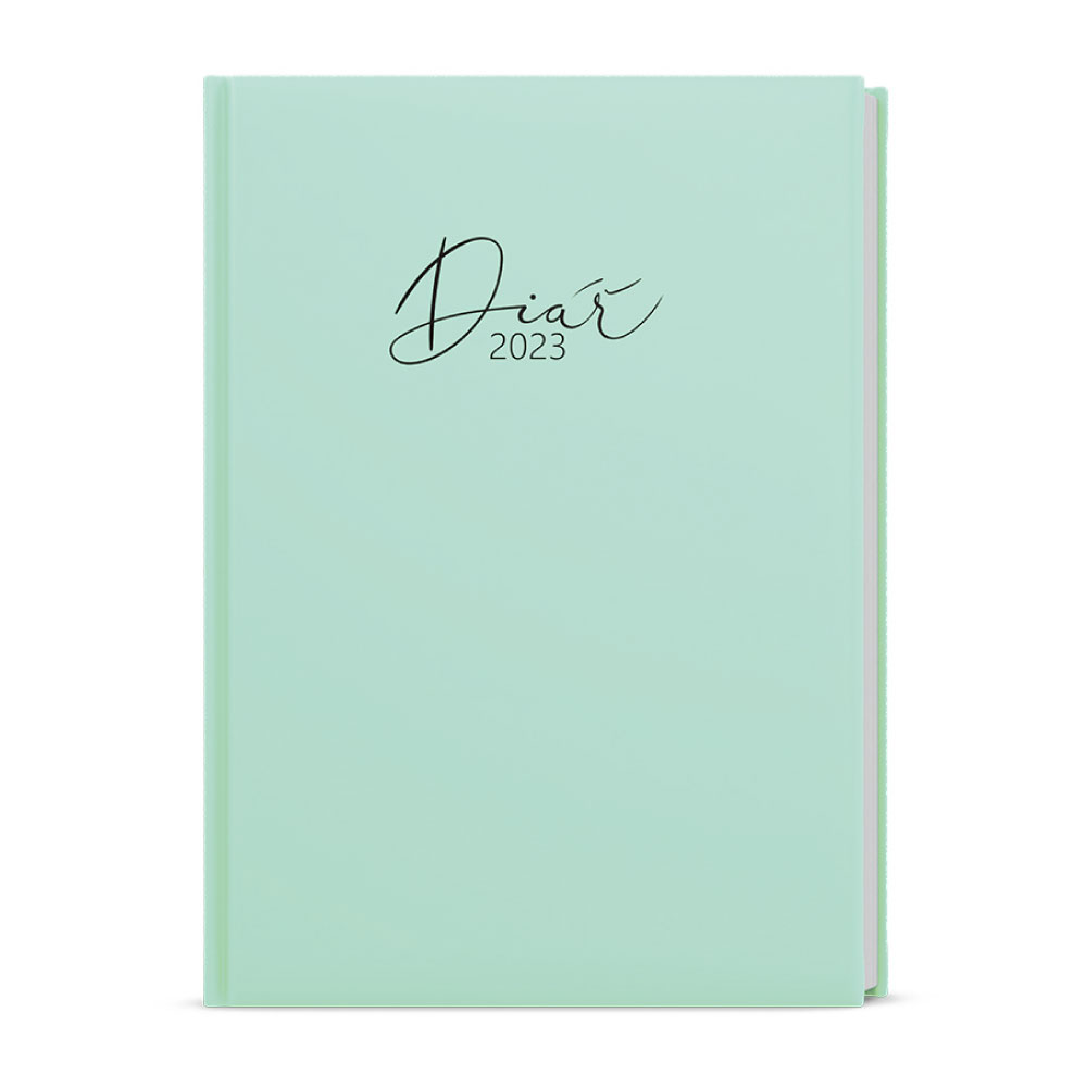 Size: 143 x 205 mm Format: A5 Calendarium: daily Czech and Slovak with names Language mutations: CZ, SK, ANG, D, RU Cover material: velvet matt laminate with partial varnish Paper: white with perforated corners Number of pages: 352 Binding: sewn bi