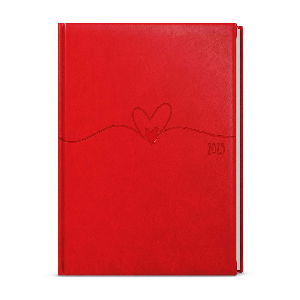 Daily Diary 2025 David Vivella A5 with hot stamping - red - Heart