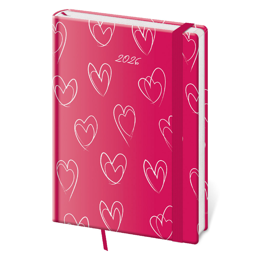 Daily diary A5 2026 Vario - Hearts with elastic band