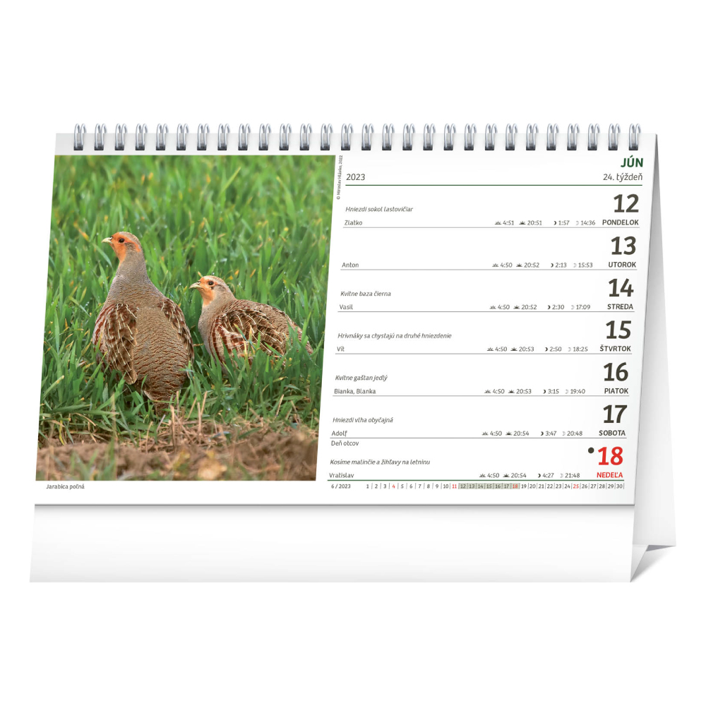 Size: 23,1 x 14,5 cm Calendarium: slovak weekly Number of pages: 30 sheets (double-sided printing) Binding: Twin Wire Paper: 100 g/m2 Advertising space: 23,1 x 2,9 cm