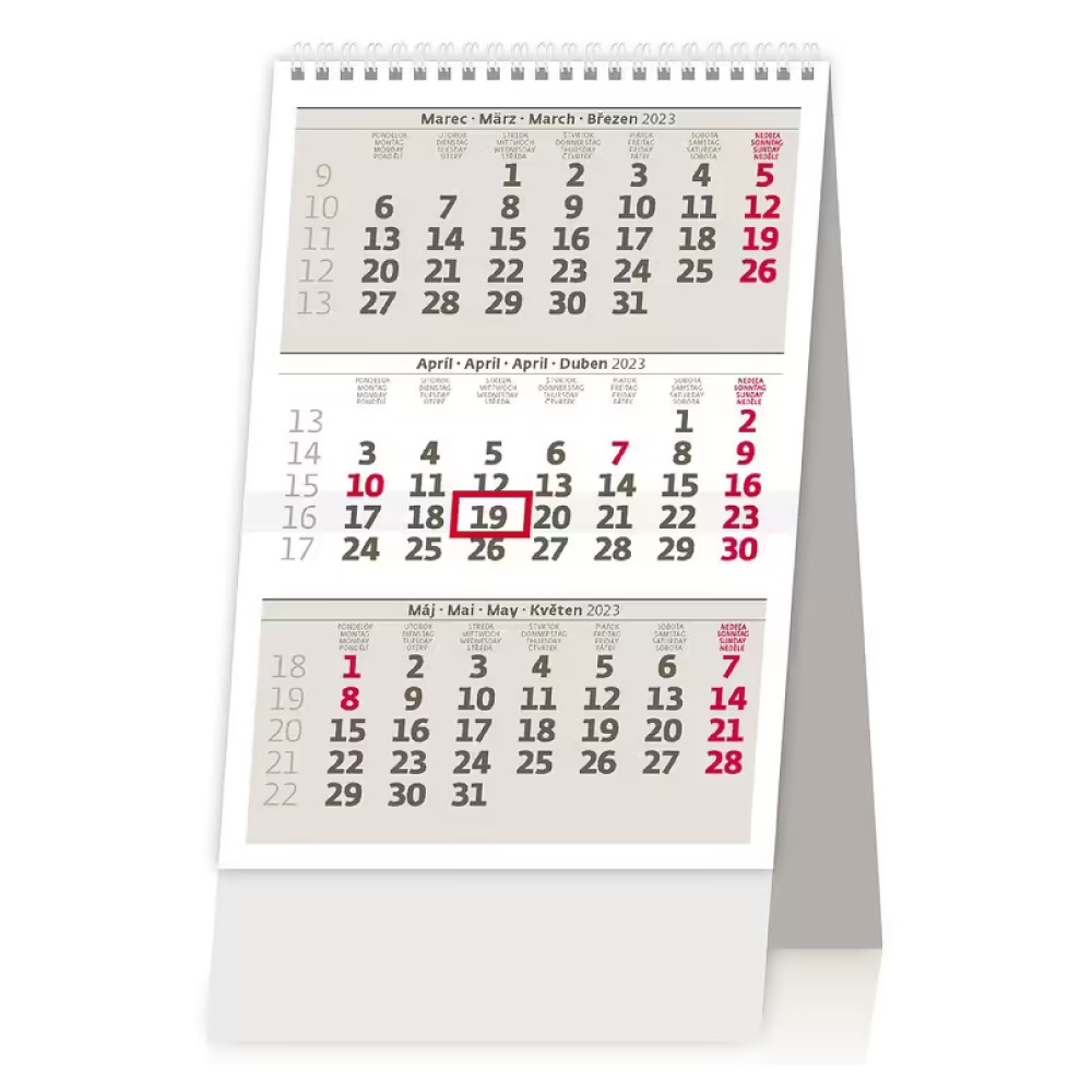 Size: 11 x 16 cmCalendarium: Czech/Slovak threemonthsNumber of Pages: 12 sheets (both printed)Binding: Twin wireAdvertising space: 11 x 3,5