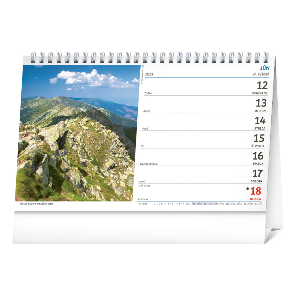 Size: 23,1 x 14,5 cm Calendarium: slovak weekly Number of pages: 30 sheets (double-sided printing) Binding: Twin Wire Paper: 100 g/m2 Advertising space: 23,1 x 2,9 cm