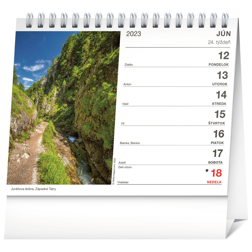 Size: 16,5 x 13 cm Calendarium: slovak weekly Number of pages: 30 sheets (double-sided printing) Binding: Twin Wire Paper: 100 g/m2 Advertising space: 16,5 x 2,9 cm