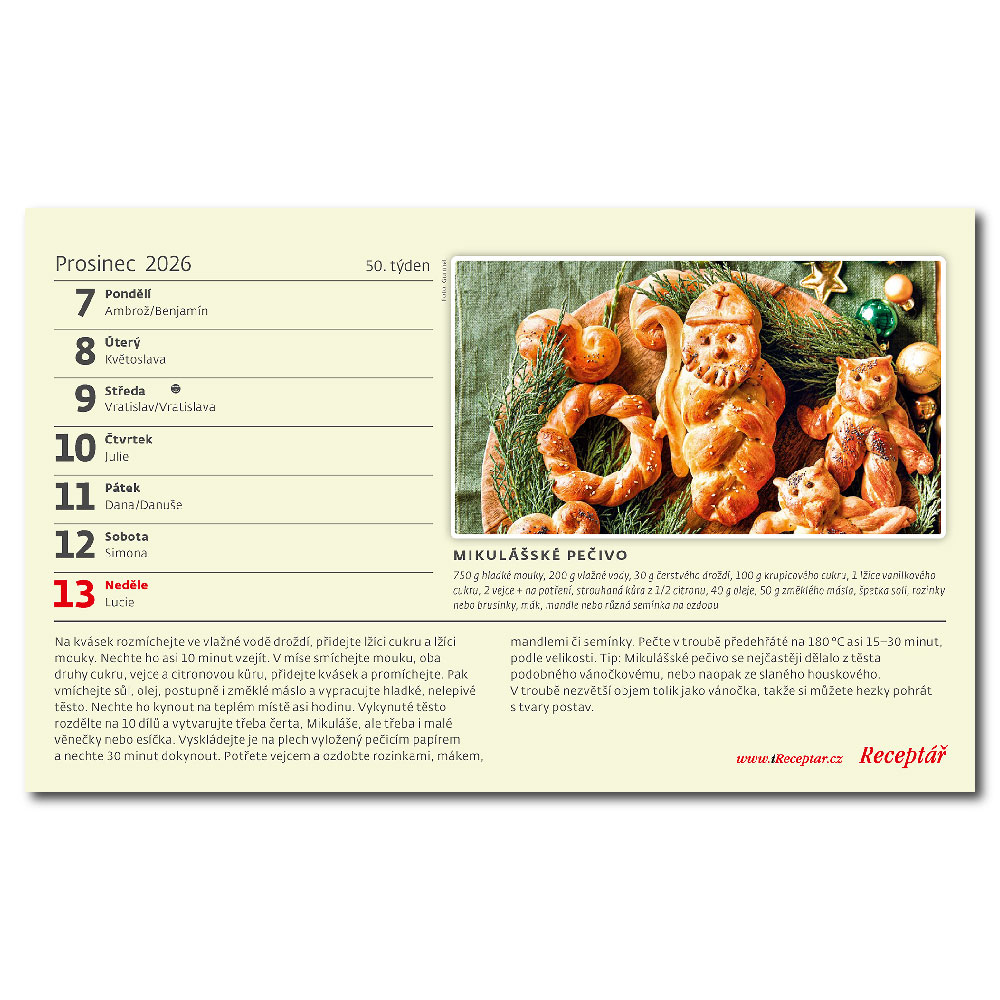 Size: 22,6 x 13,9 cm Calendarium: Czech Weekly Line with names Number of Pages: 58 + 2 Pages Binding: Twin wire Advertising space: 22,6 x 3 cm