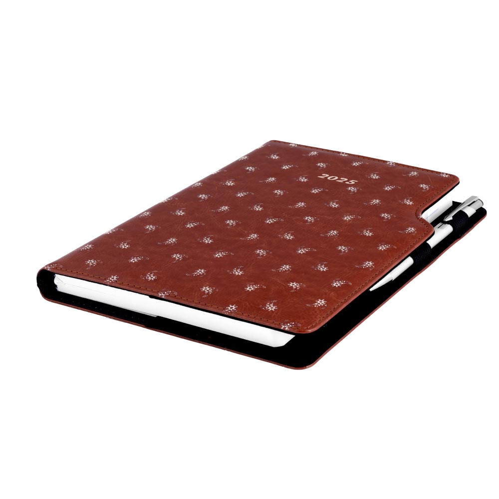 Diář DESIGN weekly special A5 2025 - brown - white flower