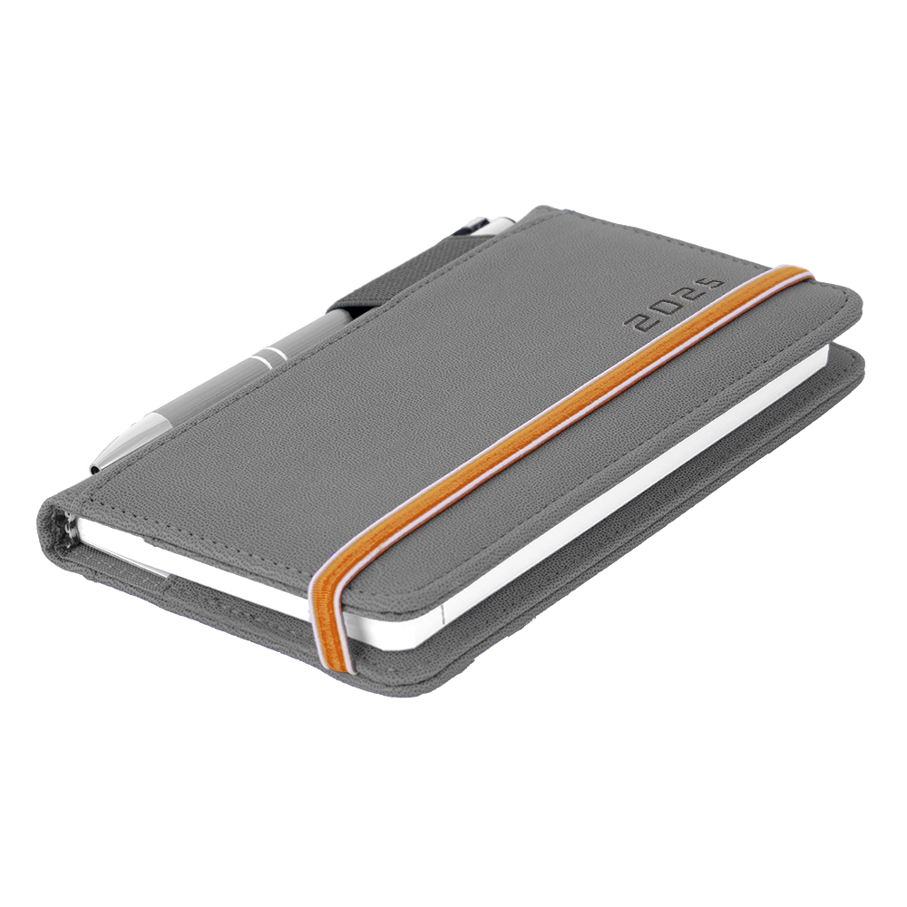 Diary AMOS weekly pocket 2025 Polish - grey/orange rubber band