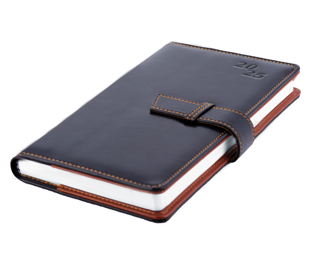 Diary contains: tear-off corners, white bookmark, loop for closing