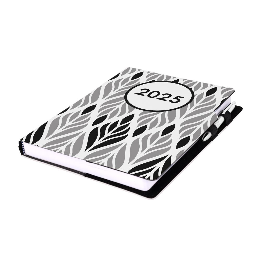 Diary contains: tear-off corners, white bookmark and pen loop