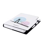 Diary contains: tear-off corners, white bookmark and pen