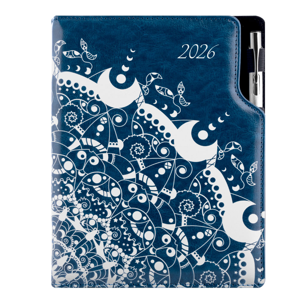 Diary DESIGN daily A5 2026 SK - blue - Ornament