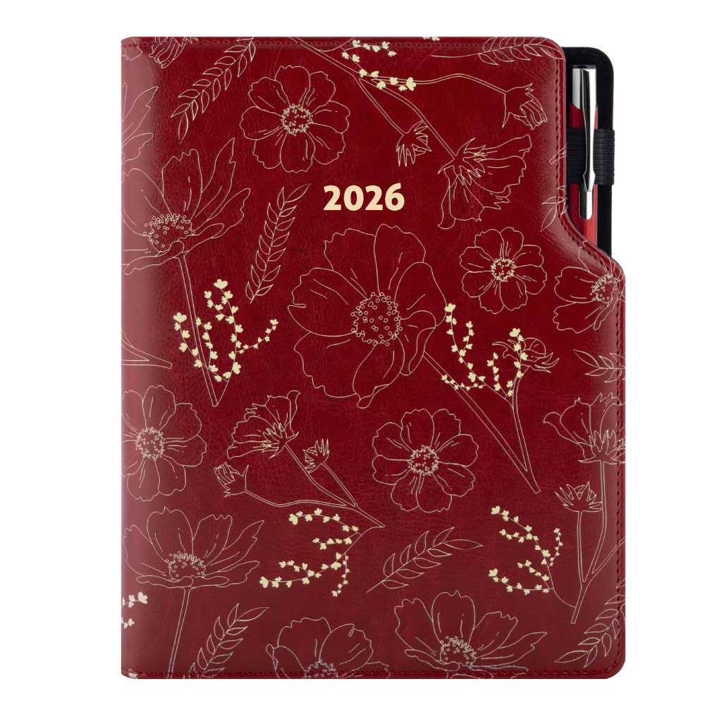 Diary DESIGN daily A5 2026 SK - burgundy - Flowers