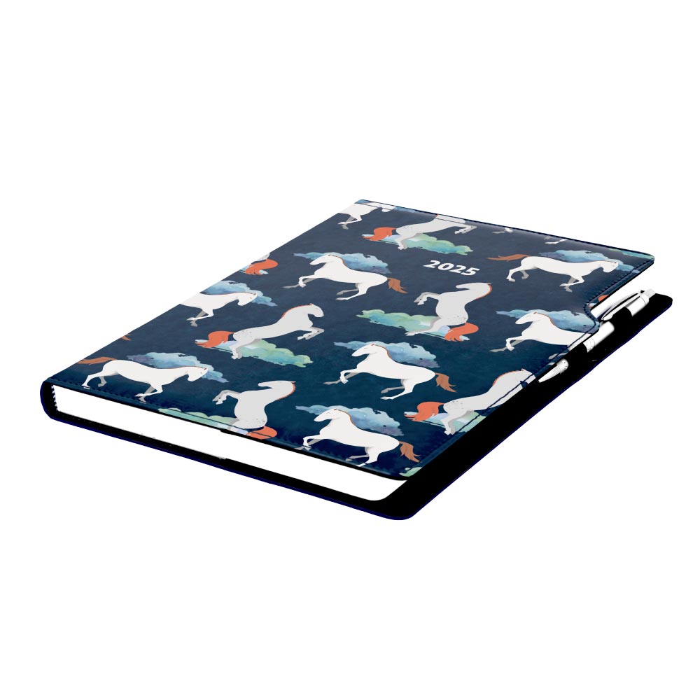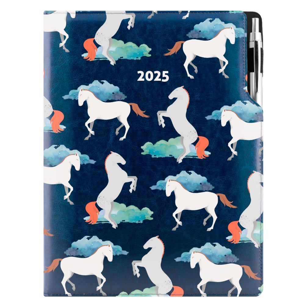 Diary DESIGN weekly A4 2025 PL - blue - horses