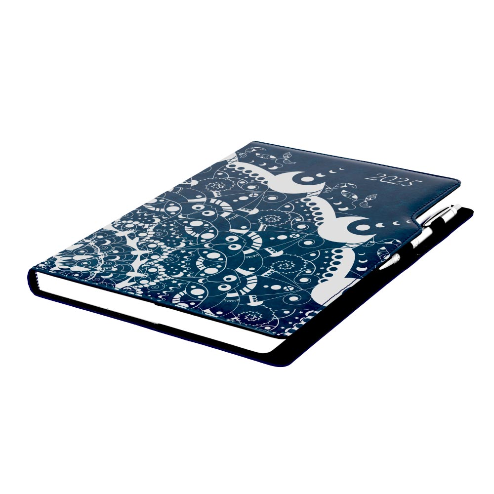 Diary DESIGN weekly A4 2025 PL - blue - ornament