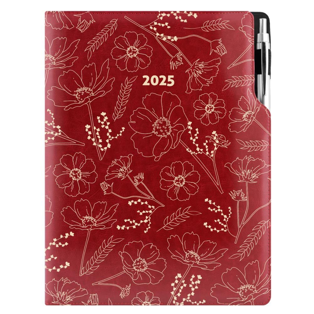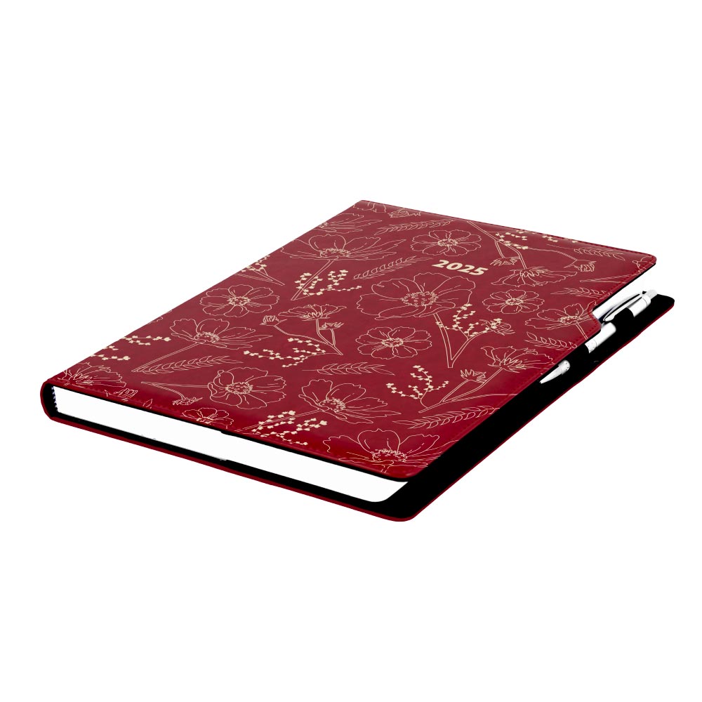 Diary DESIGN weekly A4 2025 PL - burgundy - flowers