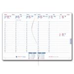 Format: B6 Block size: 120 x 165 mm Number of pages: 144 Binding: stapled V8 Calendarium: weekly Czech and Slovak with names Languages: CZ, SK, EN, DE, RU Block color: white Font color: blue and red Diary contains: tear-off corners, white bookmark
