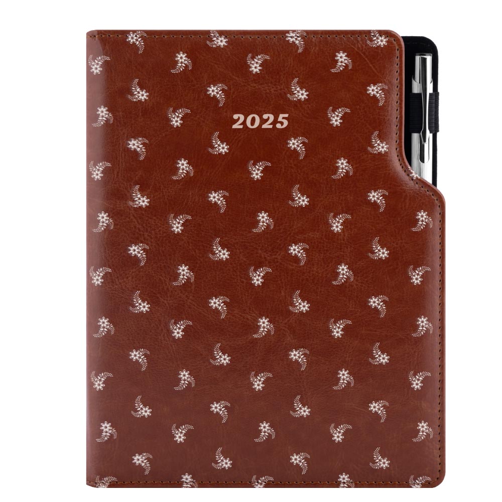 Diary DESIGN weekly B6 2025 - brown - white flower