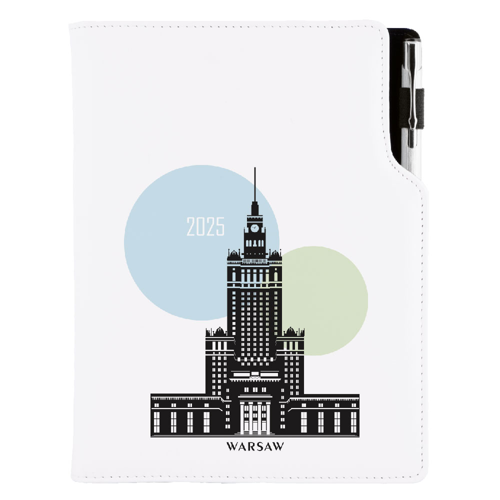 Format: B6 Block size: 120 x 165 mm Number of pages: 144 Binding: stapled V8 Calendarium: weekly Czech and Slovak with names Languages: CZ, SK, EN, DE, RU Block color: white Font color: blue and red Diary contains: tear-off corners, white bookmark