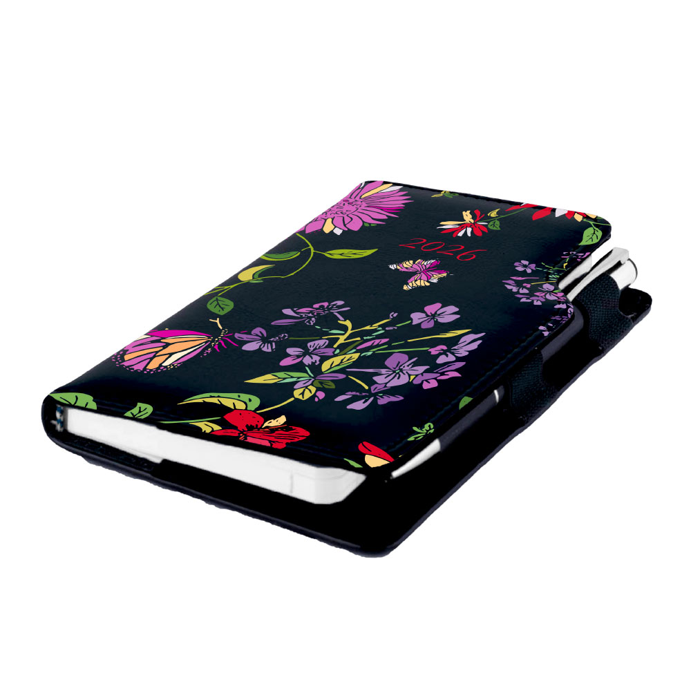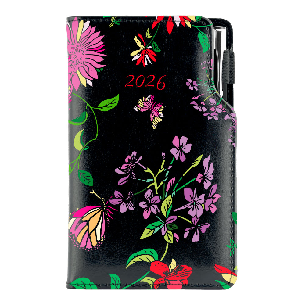 Diary DESIGN weekly pocket 2026 CZ - black - Flowers