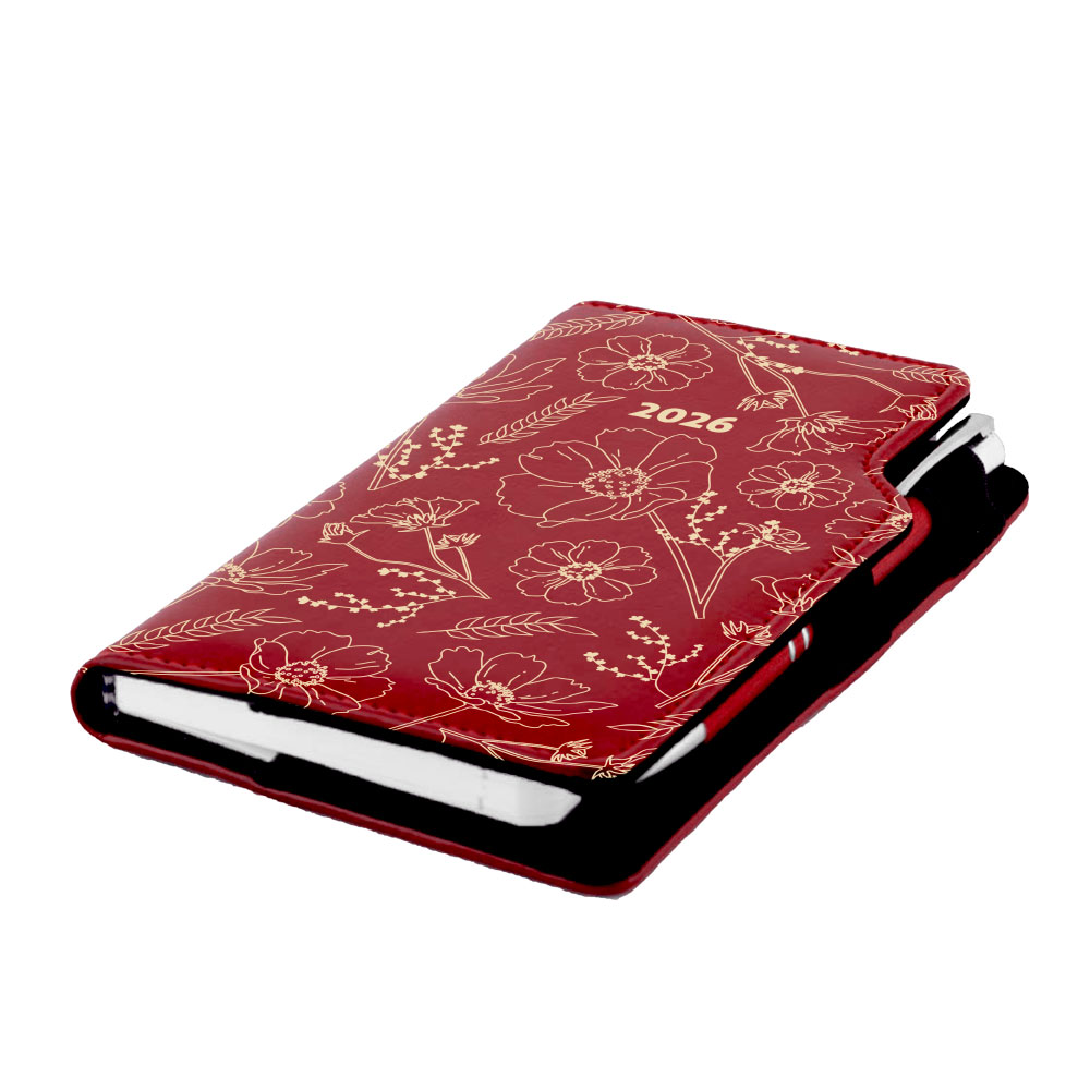 Diary DESIGN weekly pocket 2026 CZ - burgundy - Flowers