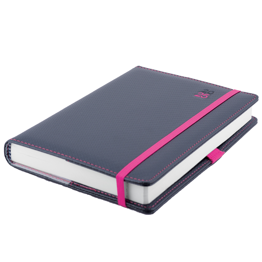 Diary ELASTIC daily A5 2025 Polish - grafit/magenta rubber band