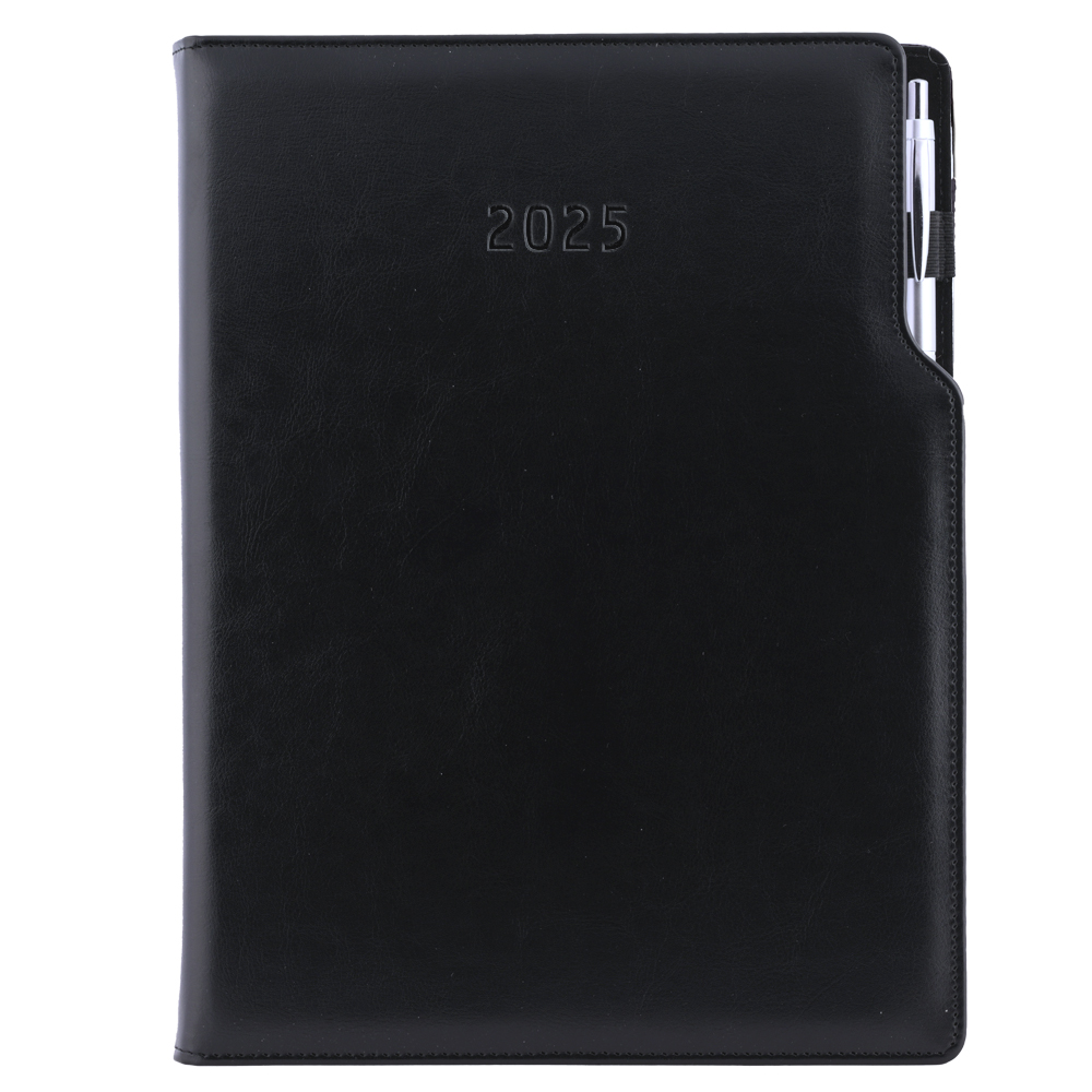 Diary GEP with ballpoint daily A4 2025 Polish - black/black velvet