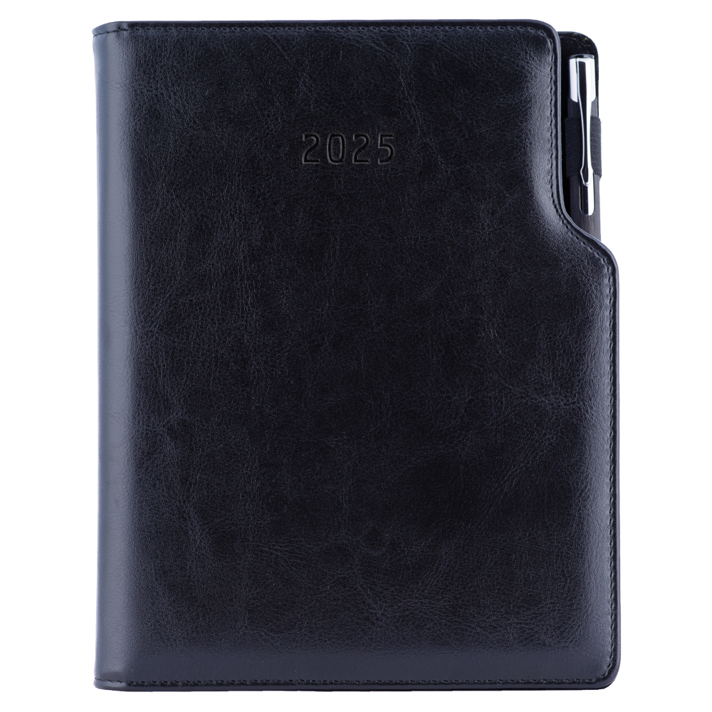 Diary GEP with ballpoint daily A5 2025 Polish - black/black velvet