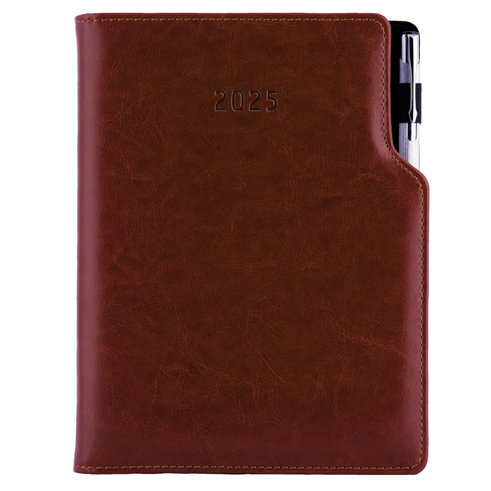 Diary GEP with ballpoint daily A5 2025 Polish - brown