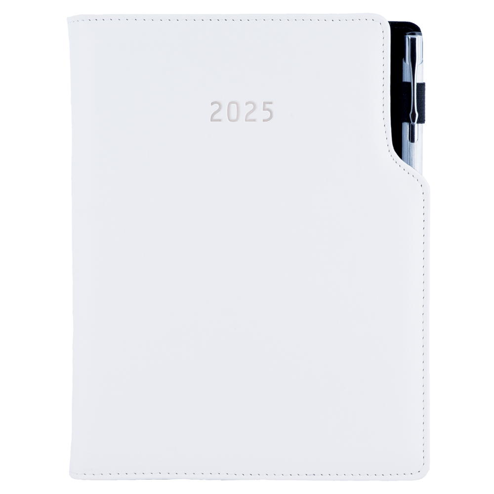 Diary GEP with ballpoint daily B6 2025 Polish - white/white stiching