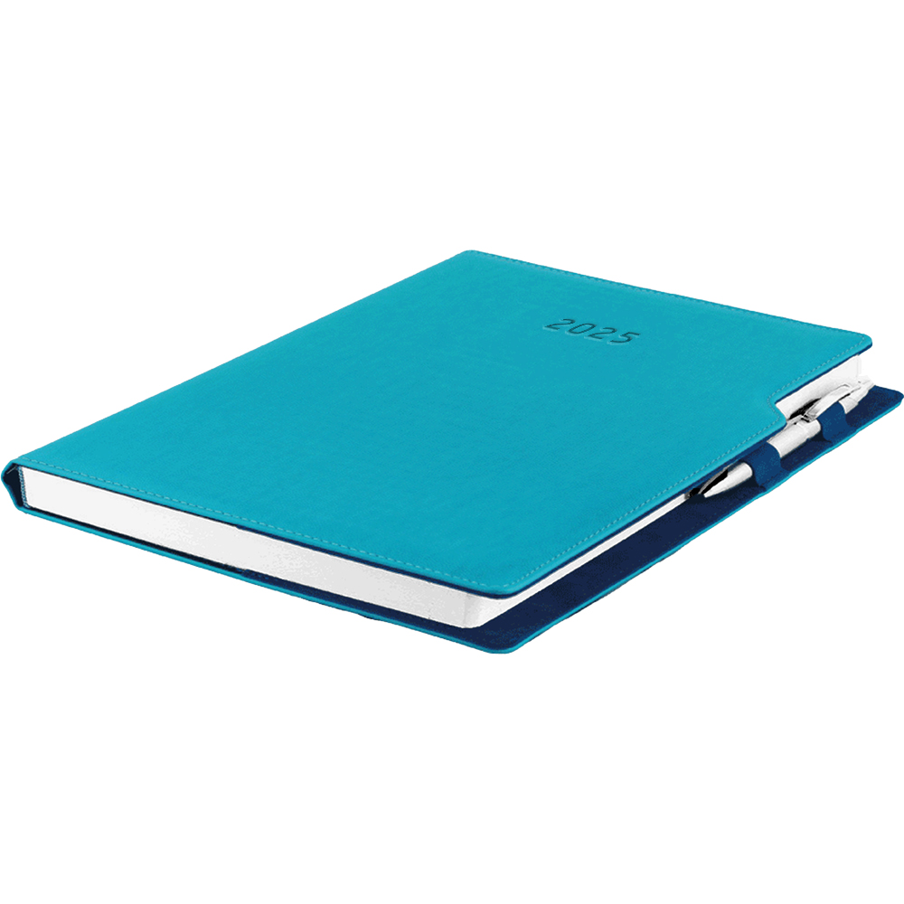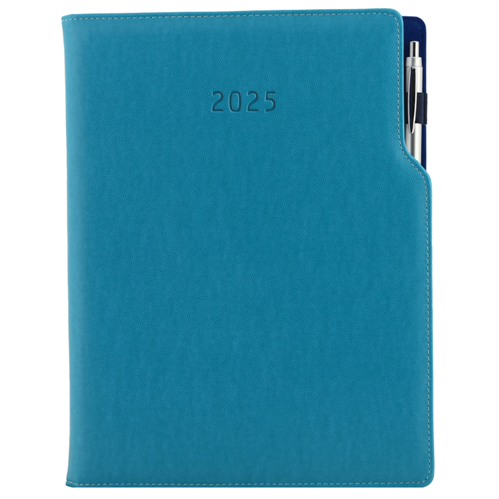 Diary GEP with ballpoint weekly A4 2025 Polish - turquoise/blue velvet
