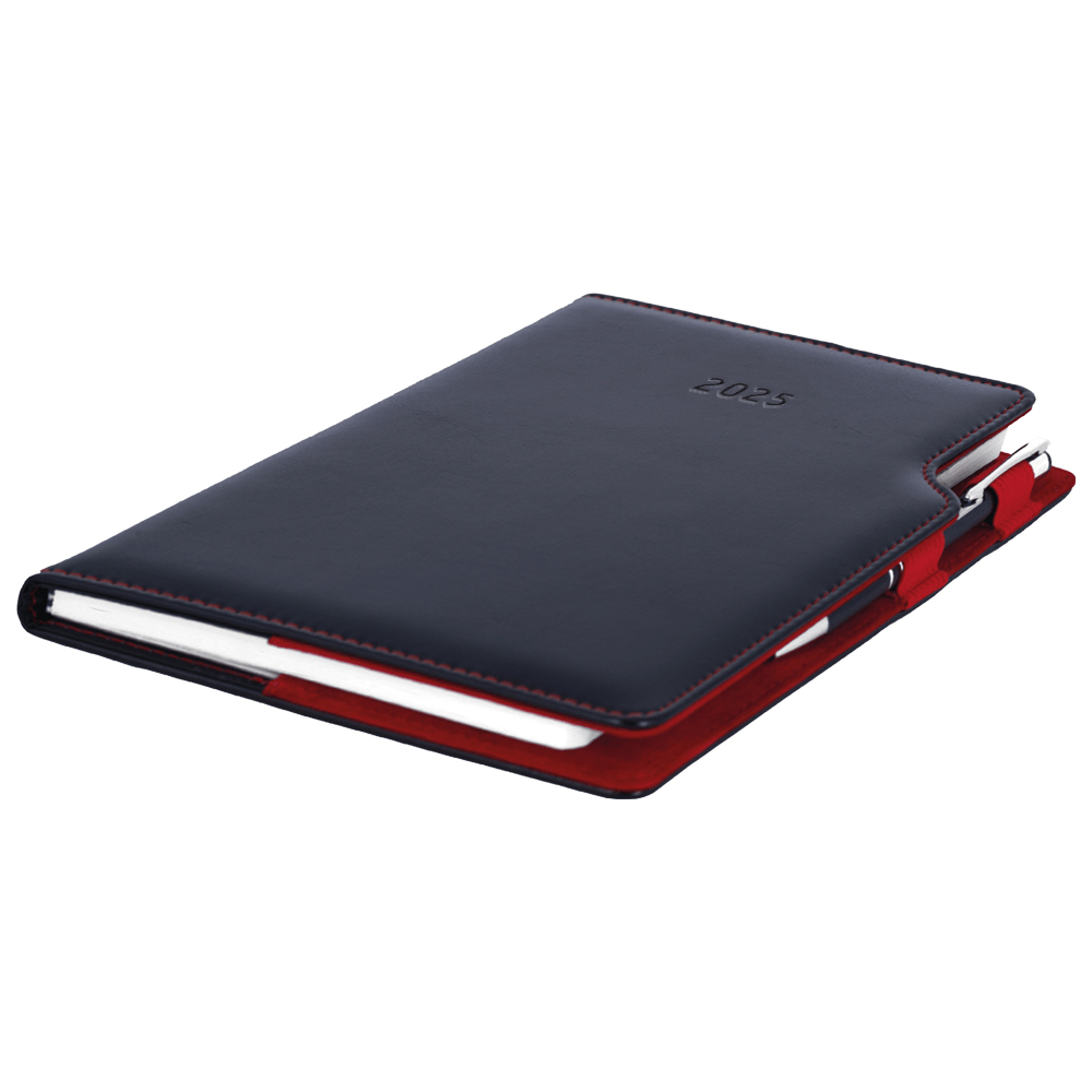 Diary contains: tear-off corners, white bookmark and pen