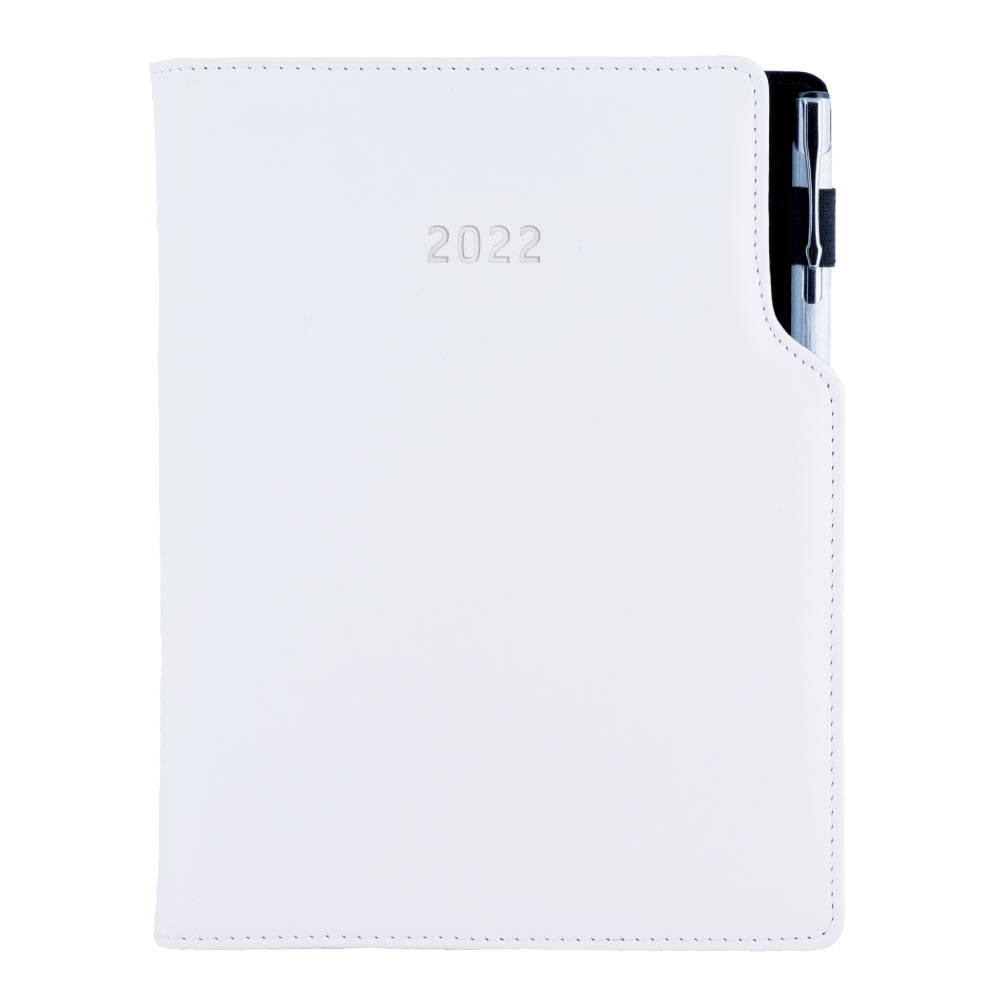 Diary GEP with ballpoint weekly special A5 2022 - white/white stiching