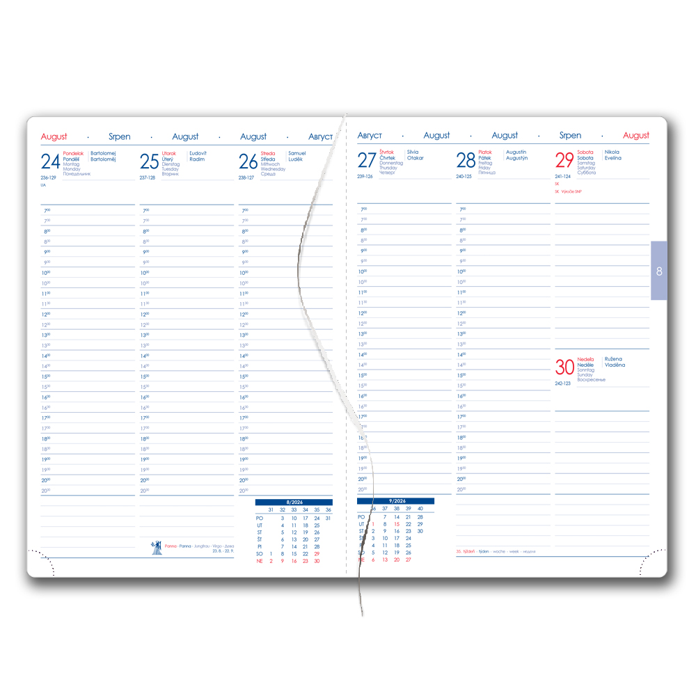 Diary SPLIT CRYSTAL weekly A5 2025 Slovak - fuchsia pink