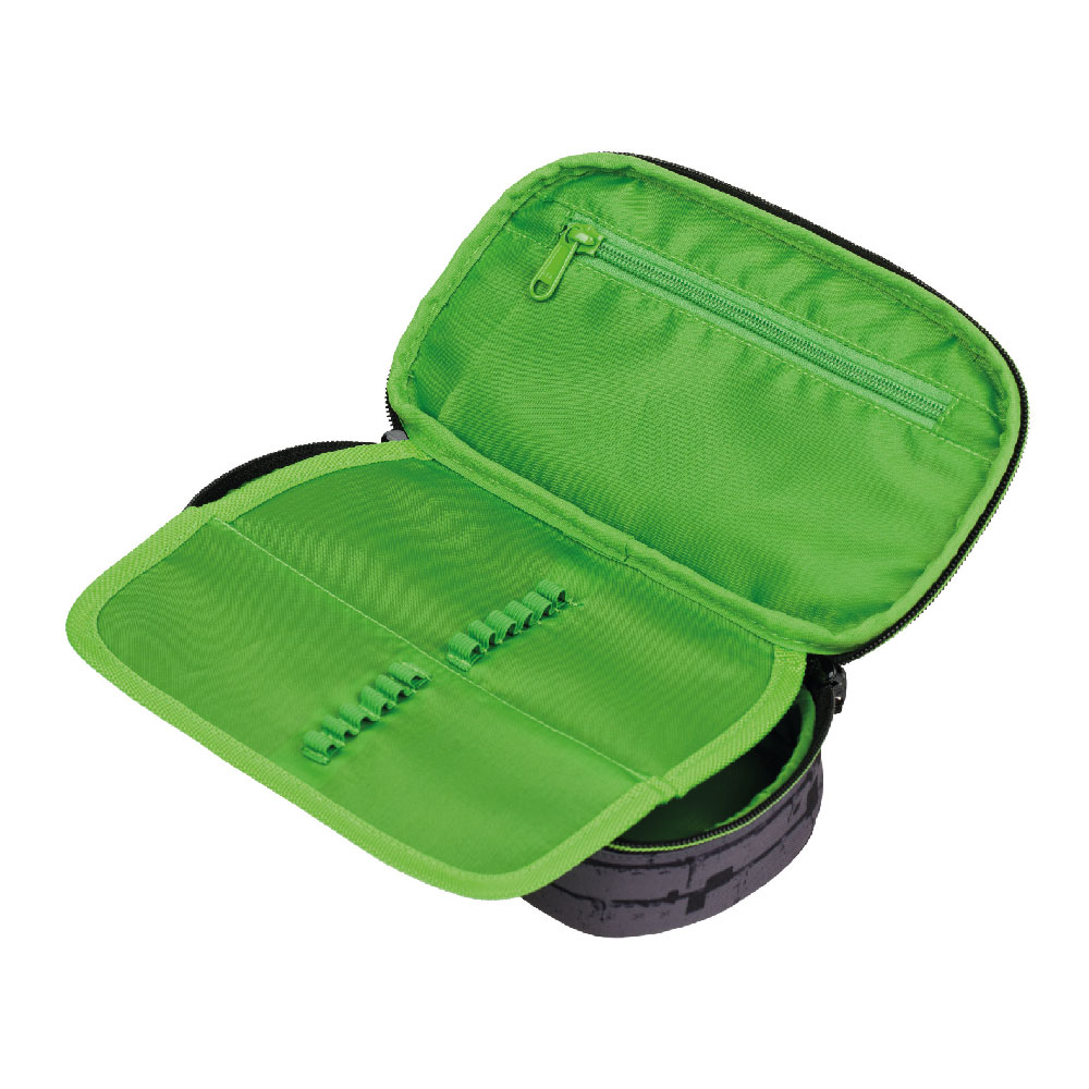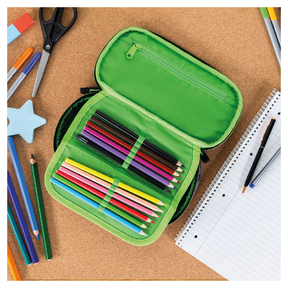 • Tough school pencil case with a hinged inner partition.