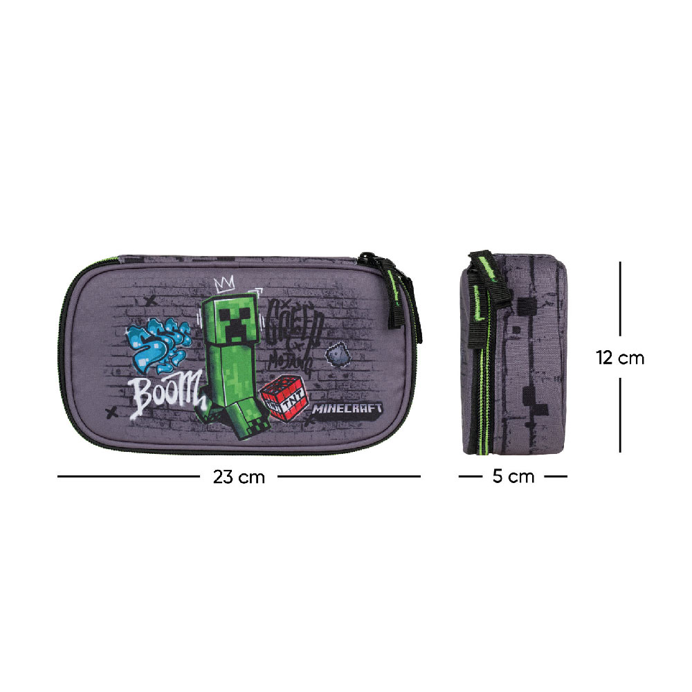 Size: 23 x 12 x 5 cm Material: 100% Polyester Weight: 200 g • Tough school pencil case with a hinged inner partition. • Internal zip pocket. • No contents
