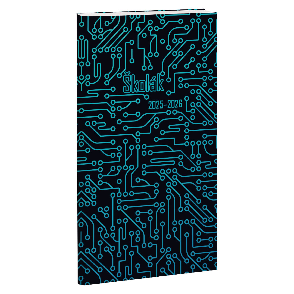 Size: 80 x 150 mm Format: pocket Calendarium: biweekly Czech nominal Number of pages: 64 Block color: white Binding: hardcover Cover material: hard paper Contains: class schedule, ruler, address book, timetable, grades, holiday overview. Use