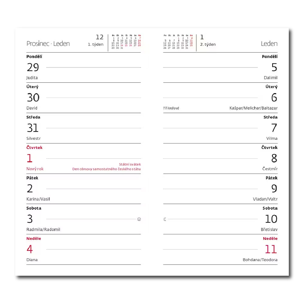 Size: 8,5 x 15,4 cm Calendarium: czech fortnightly with names Number of Pages: 80 Pages Material: lamino