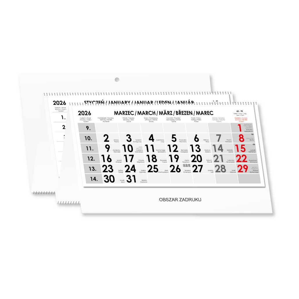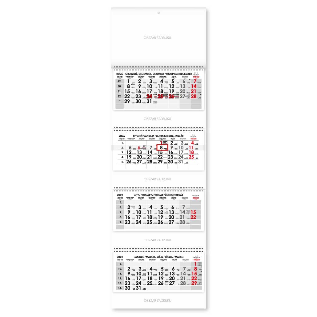 Fourmonths Wall Calendar Kvatro stacked Polisch with spiral 2026 - grey