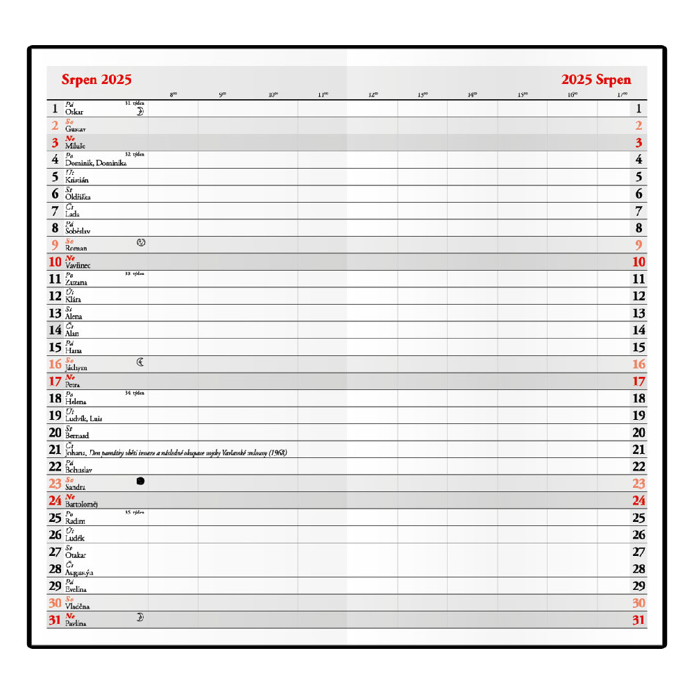 Calendar: monthly Czech nominal