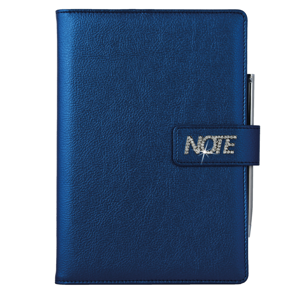 It includes a thin metal pen and magnetic closure.
