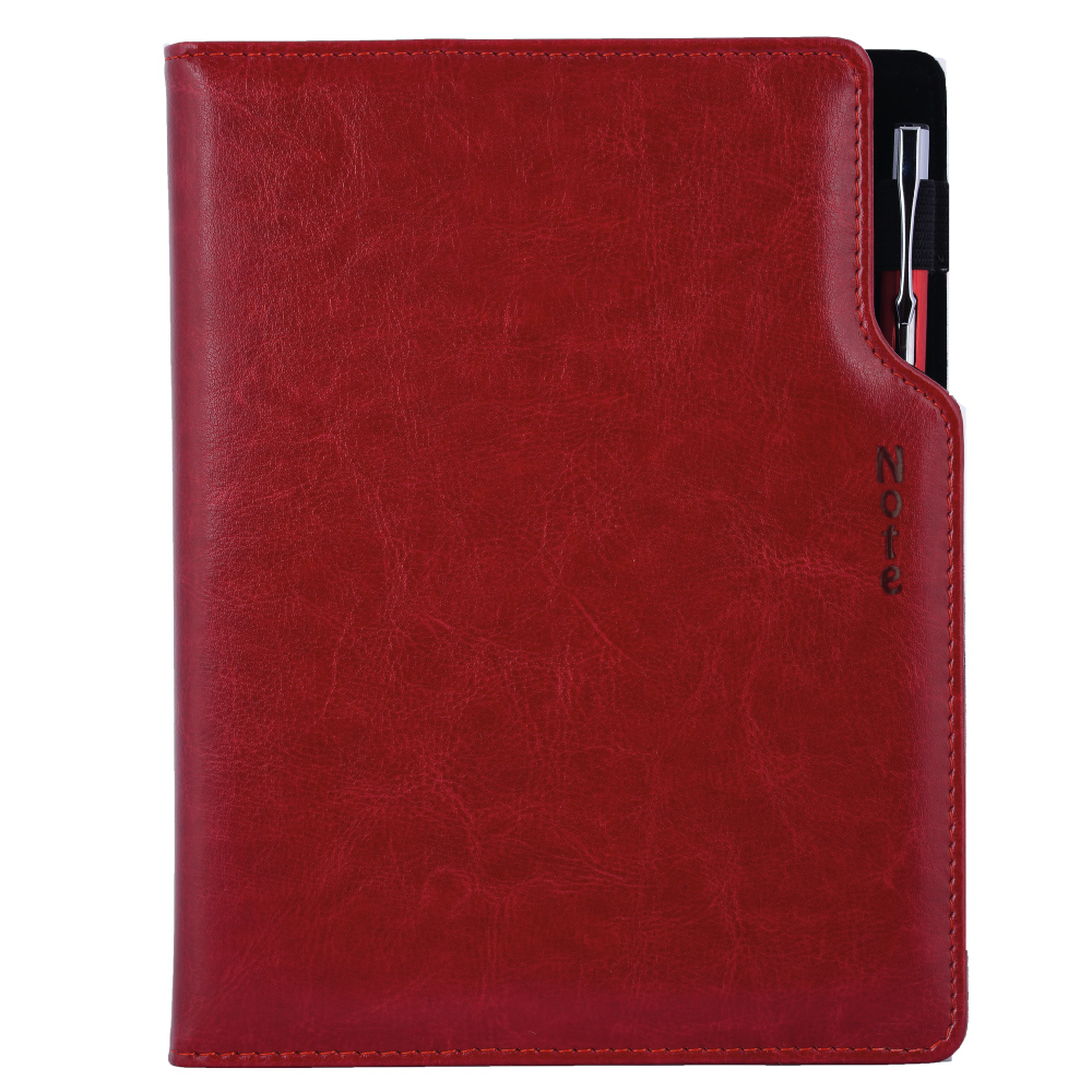 Format: A5 Size: 143 x 205 mm Material cover: smooth shiny leatherette Binding: sewn V8 Paper color: white Paper: dotted with perforation Number of pages: 144 Bookmark: white It includes pen loop and magnetic closure.