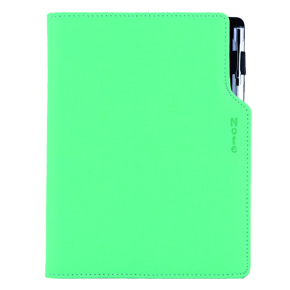 Format: B5 Size: 170 x 240 mm Material cover: patterned matte leatherette Binding: sewn V8 Paper color: white Paper: dotted with perforation Number of pages: 144 Bookmark: white It includes pen loop and magnetic closure.