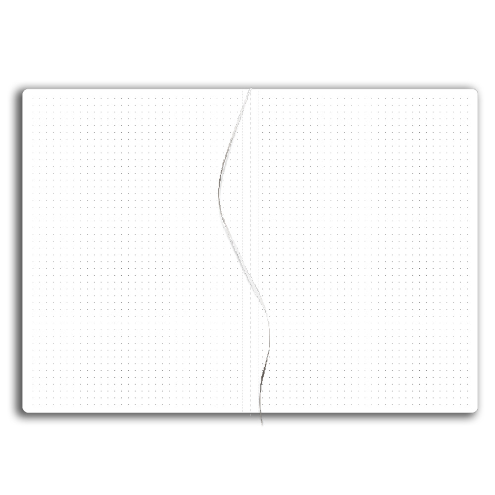 Format: B5 Size: 170 x 240 mm Material cover: patterned matte leatherette Binding: sewn V8 Paper color: white Paper: dotted with perforation Number of pages: 144 Bookmark: white It includes pen loop and magnetic closure.