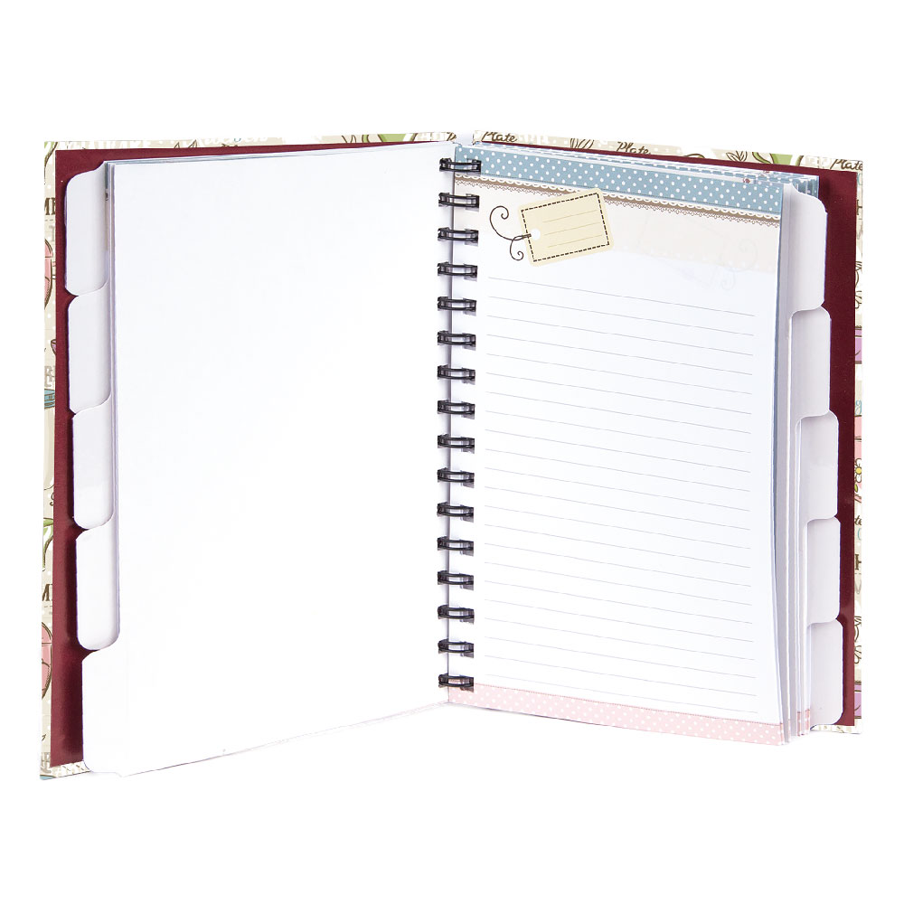Size: 145 x 205 mm Format: A5 Number of pages: 192 Paper: lined Block color: white Binding: ring binding, hard covers, wooden spoon attached with a bow