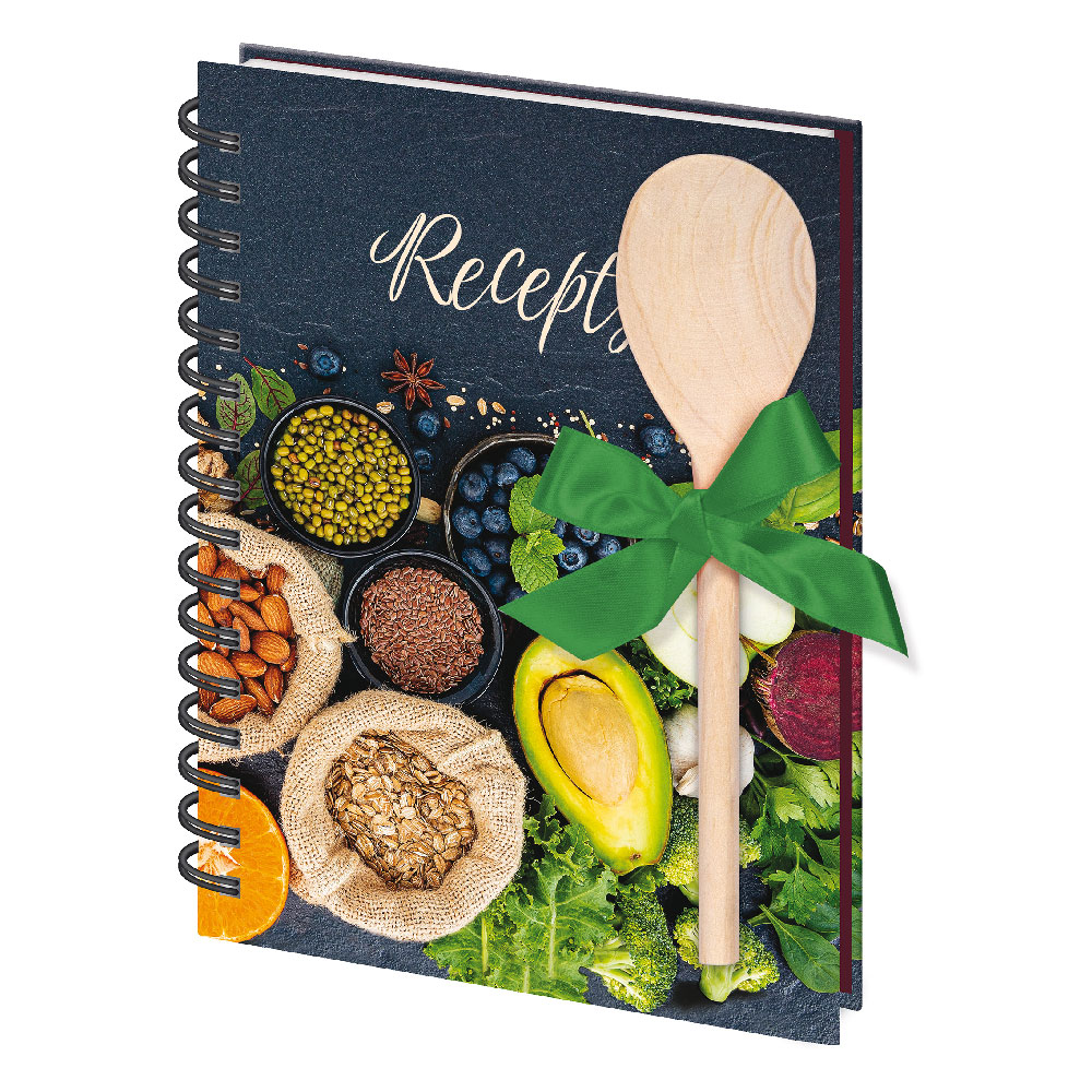 Size: 145 x 205 mm Format: A5 Number of pages: 192 Paper: lined Block color: white Binding: ring binding, hard covers, wooden spoon attached with a bow