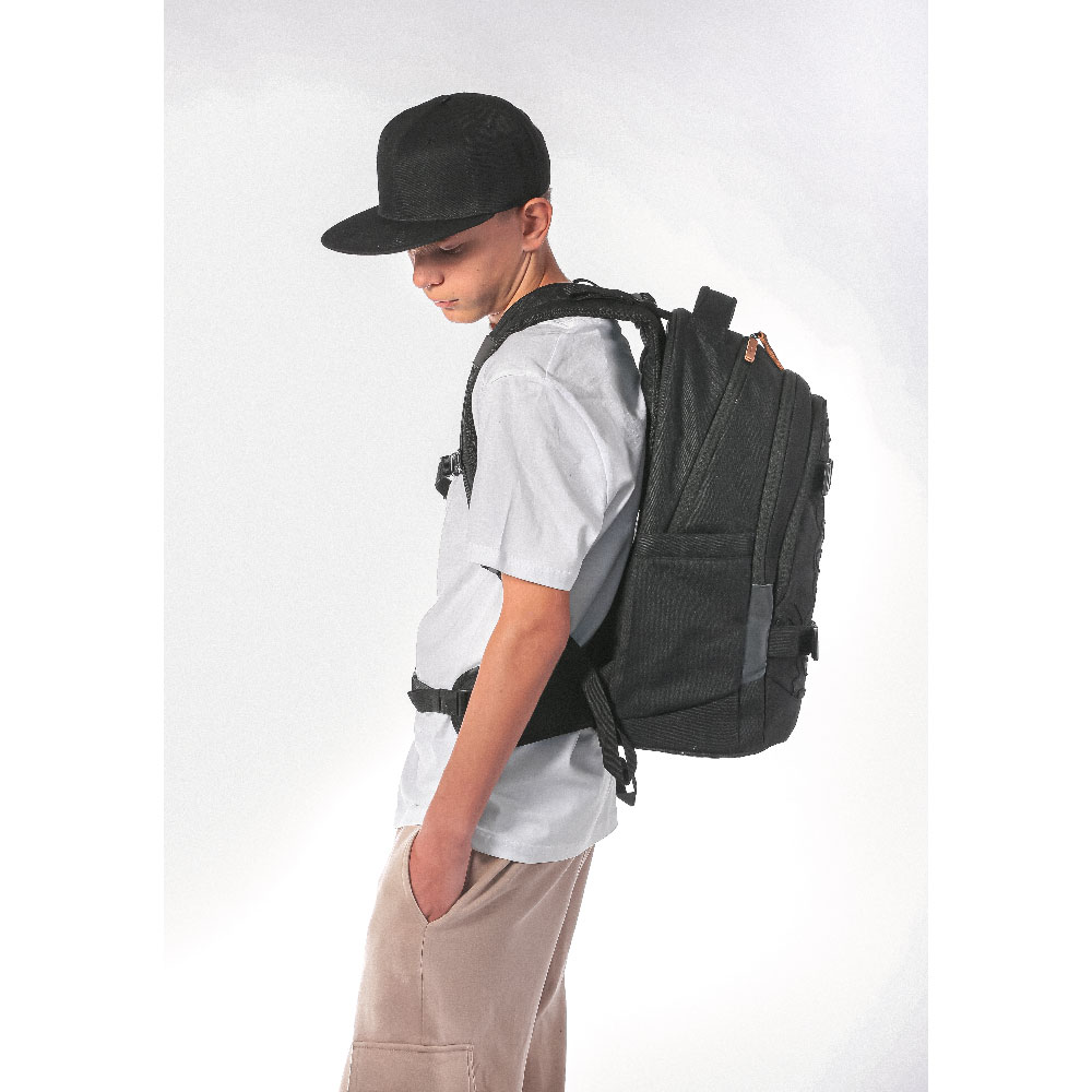 • Ergonomic school backpacks with three separate zippeCzerwony compartments, internal organiser, and a pocket for a 15-inch laptop or tablet.