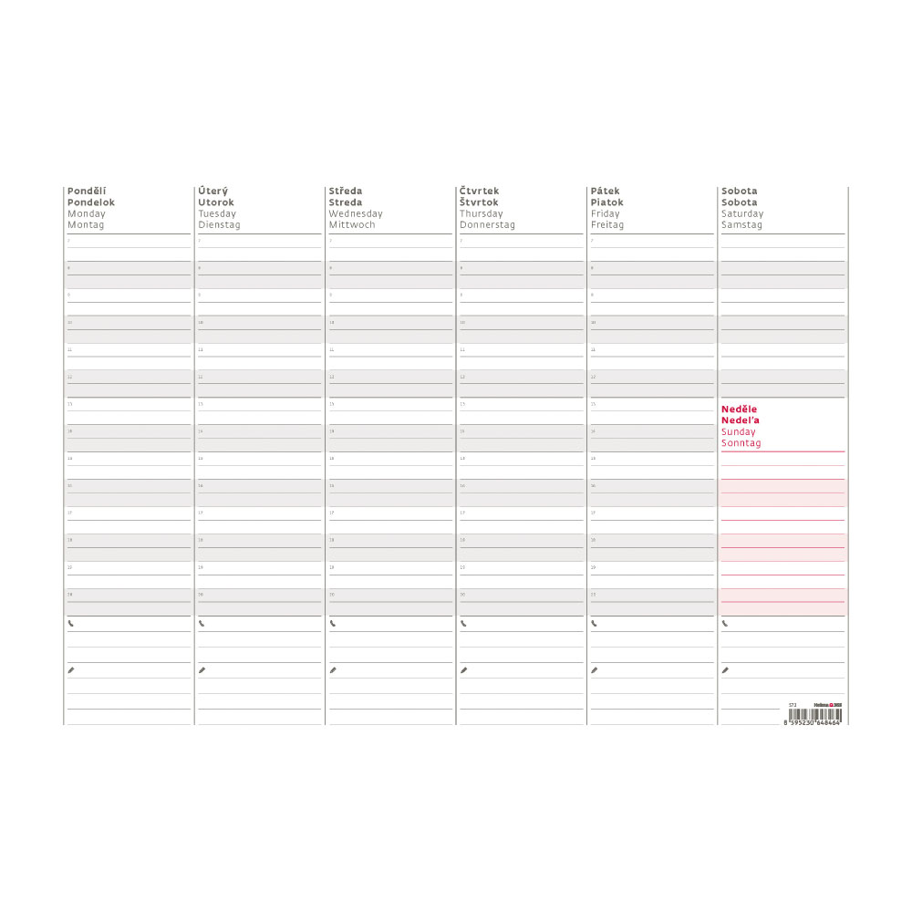Size: 45 x 31,5 cmCalendarium: weekly neutralNumber of Pages: 50 sheets