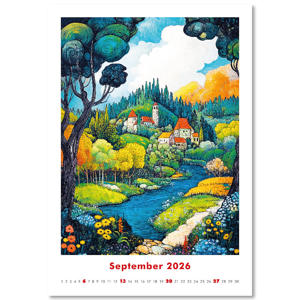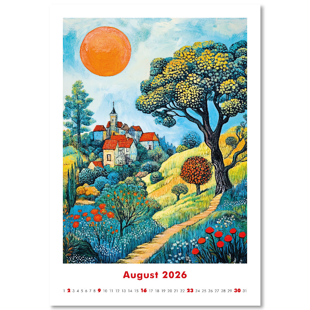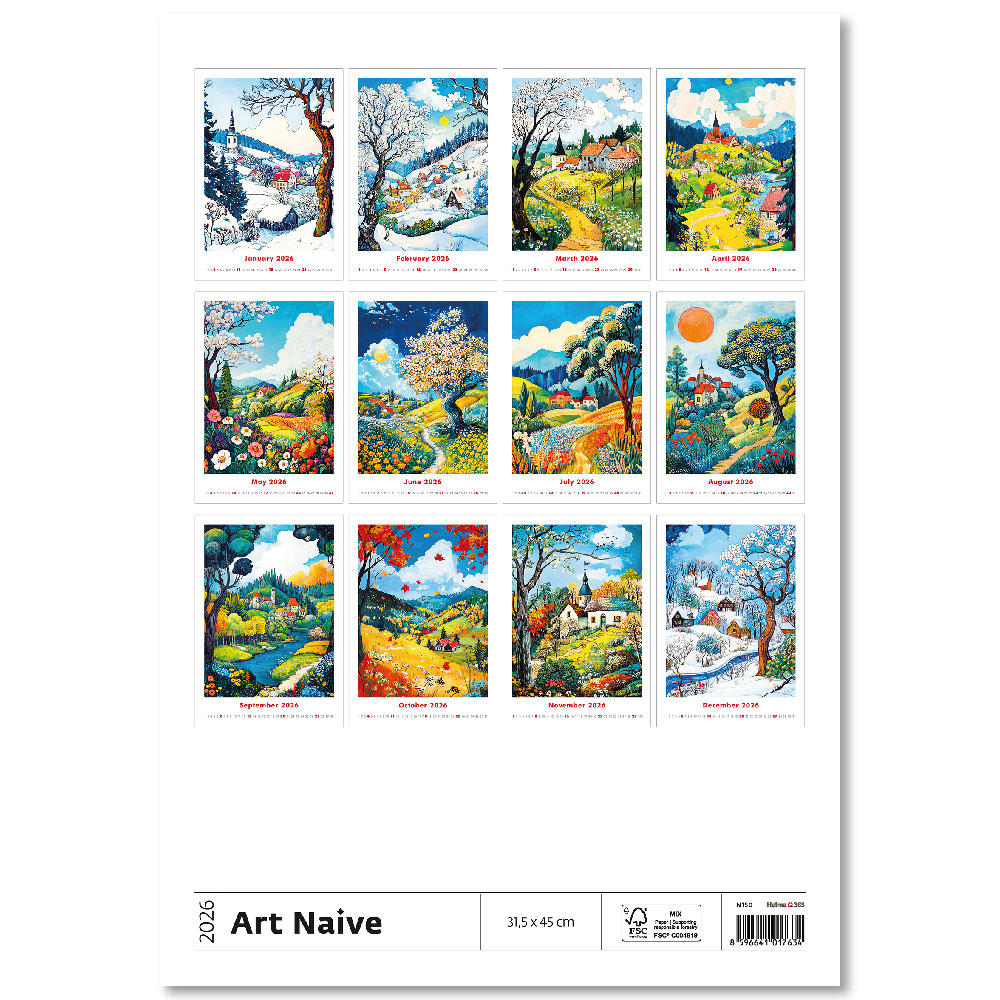 Size: 31,5 x 45 cm Calendarium: Monthly International Number of Pages: 14 Pages Binding: Twin wire Advertising space: 31,5 x 7 cm