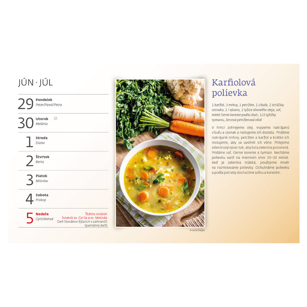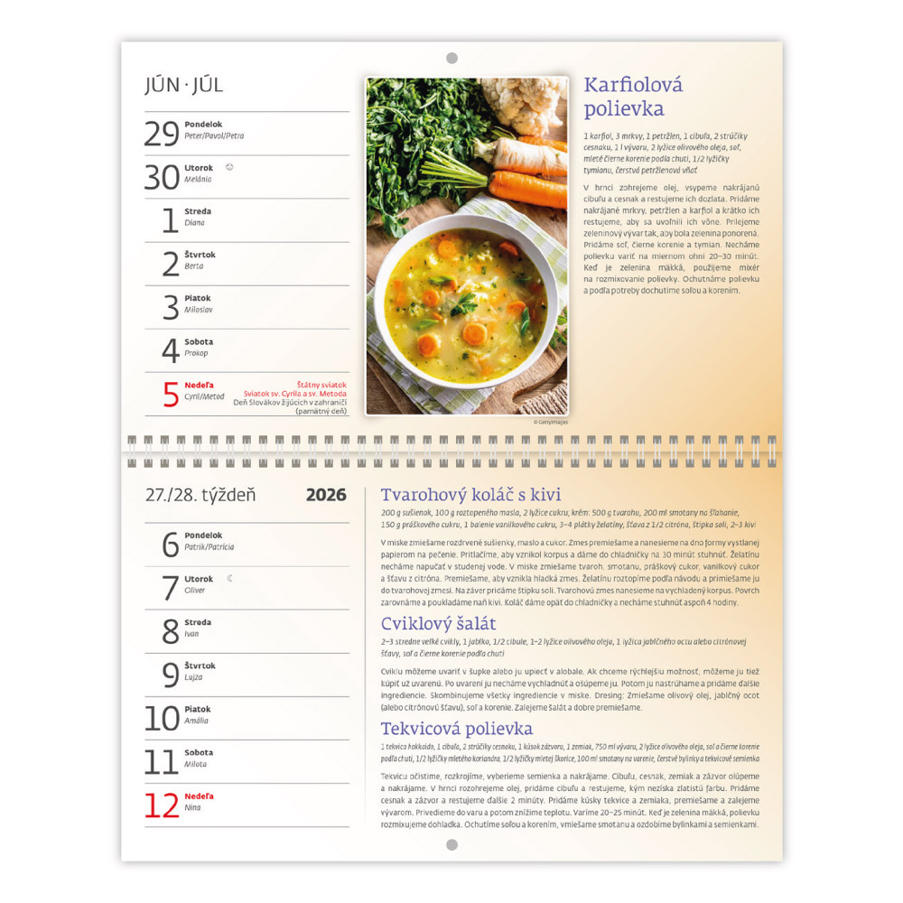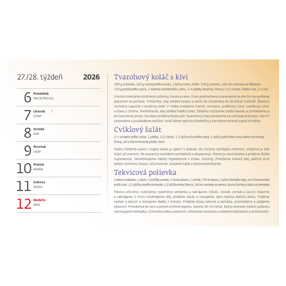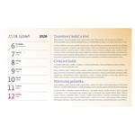 Size: 22.6 x 13.9 cm Calendar: Slovak weekly line nominal Calendar area: 58 + 2 pages Binding: Twin Wire