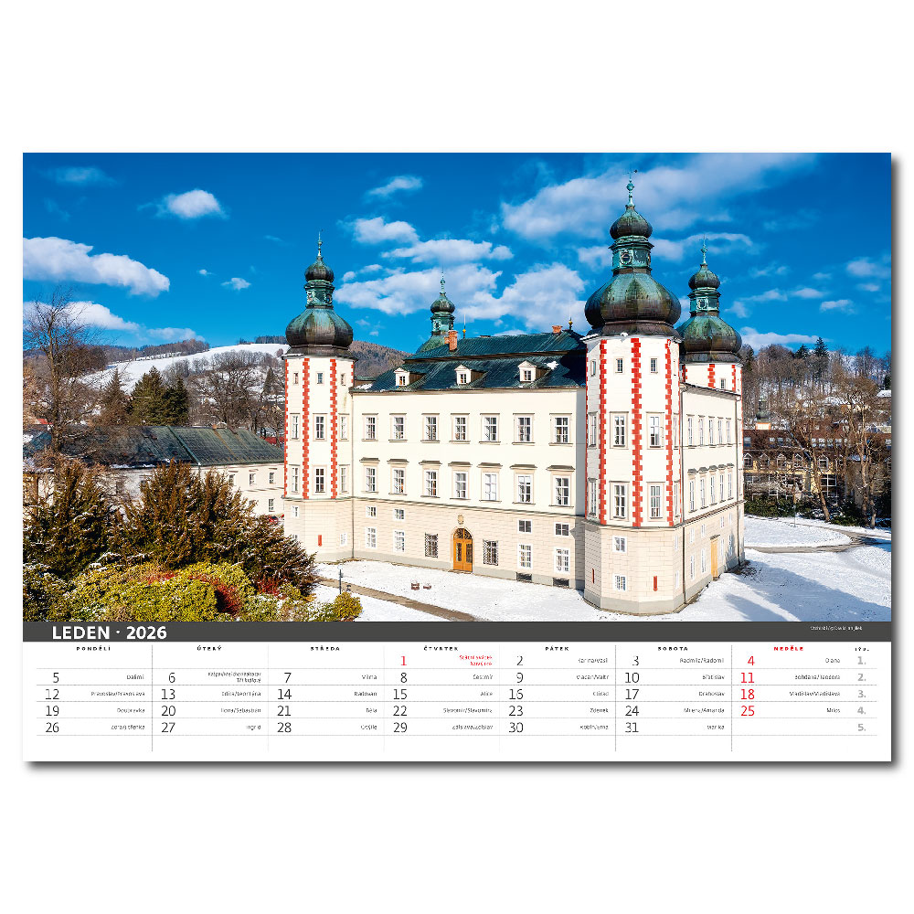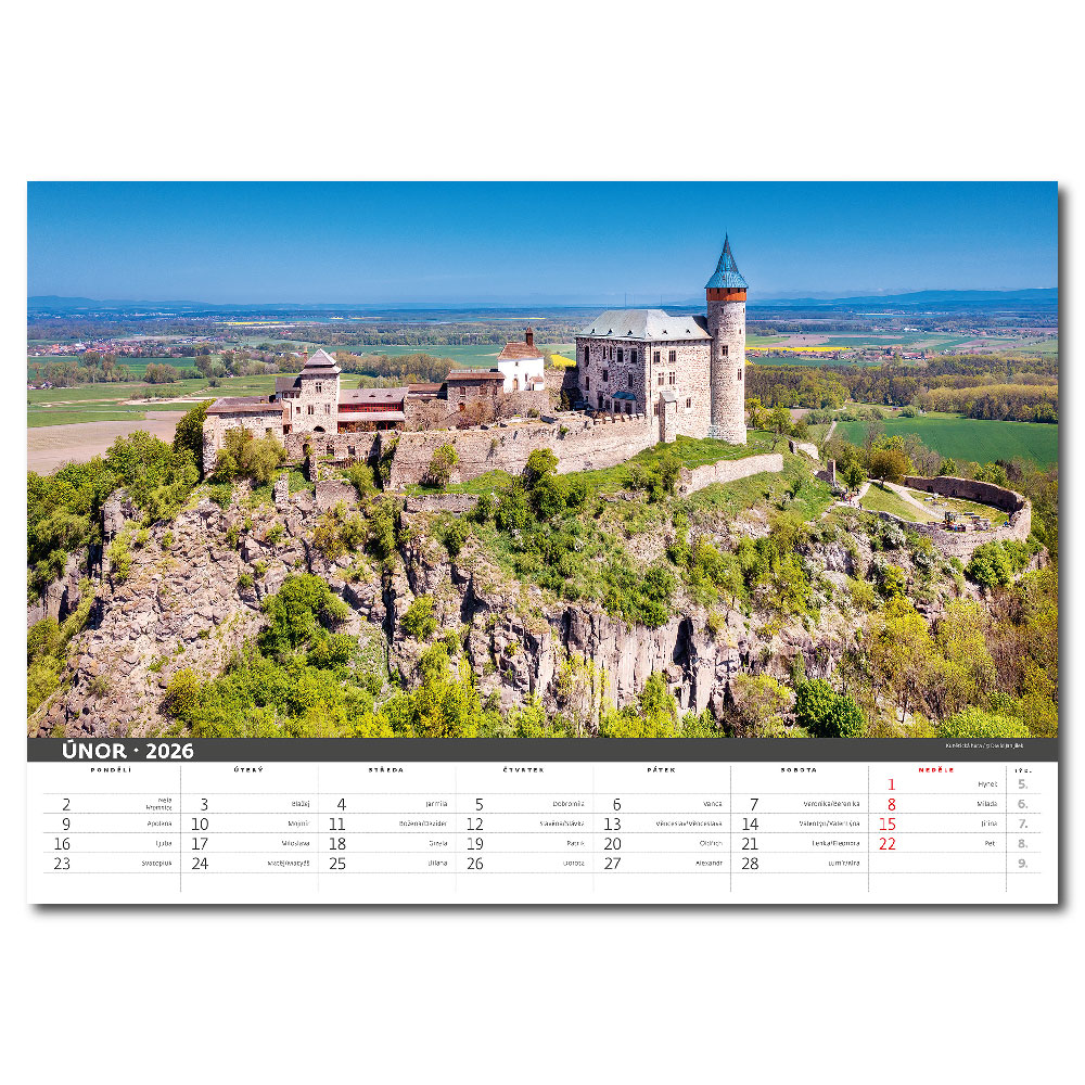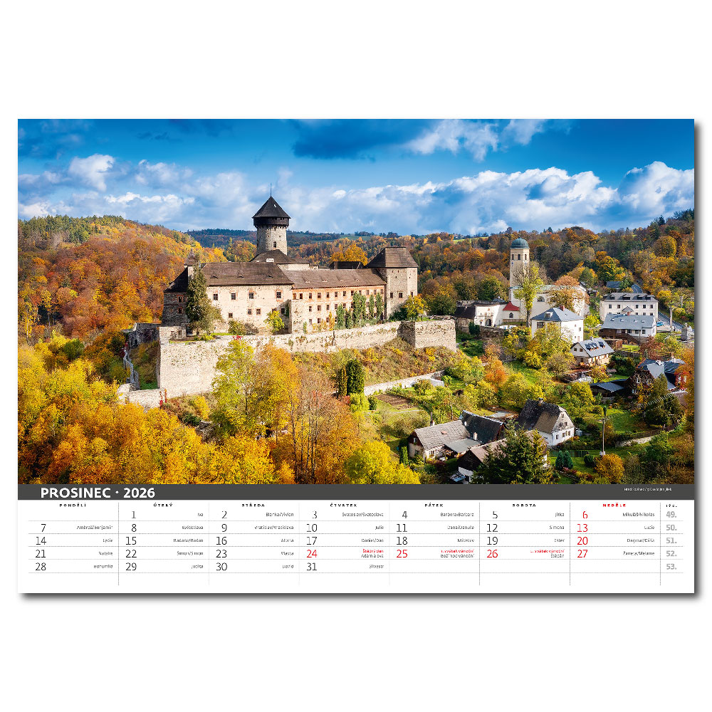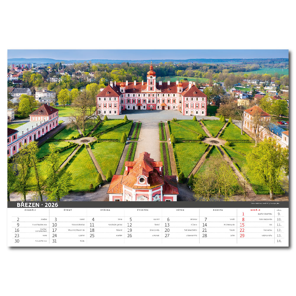 Size: 45 x 31,5 cm Calendarium: Czech monthly with names Number of Pages: 14 Pages Binding: Twin Wire Advertising space: 45 x 7 cm